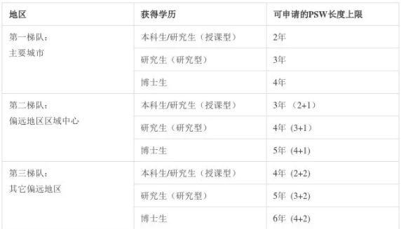 根据申请人学历的不同,PSW的有效期也分为三类: