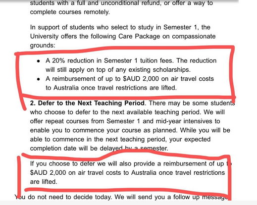 现在越来越多的澳洲大学热切关怀被疫情影响的中国留学生, 其他的大学你get如此“大手笔”“简洁意赅”的关爱方式了吗!!