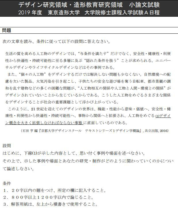 上图是东京造型大学面向全专业的小论文题目,看起来其实有点像我们平时语文考试做的阅读理解。