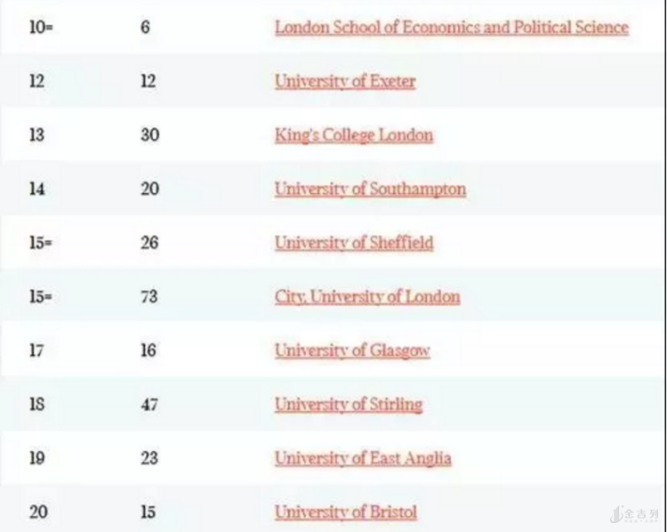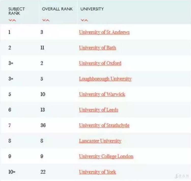 排名第一的是 圣安德鲁斯大学 ,圣安德鲁斯大学是英国一所综合型大学,是英国苏格兰第一所大学,并且该校也还是英语世界中第三古老的大学。 历年来各国学子都以能进该校学习为荣。