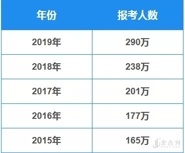 下图是2015-2019年的研究生报考人数,每年都呈现明显上升趋势。