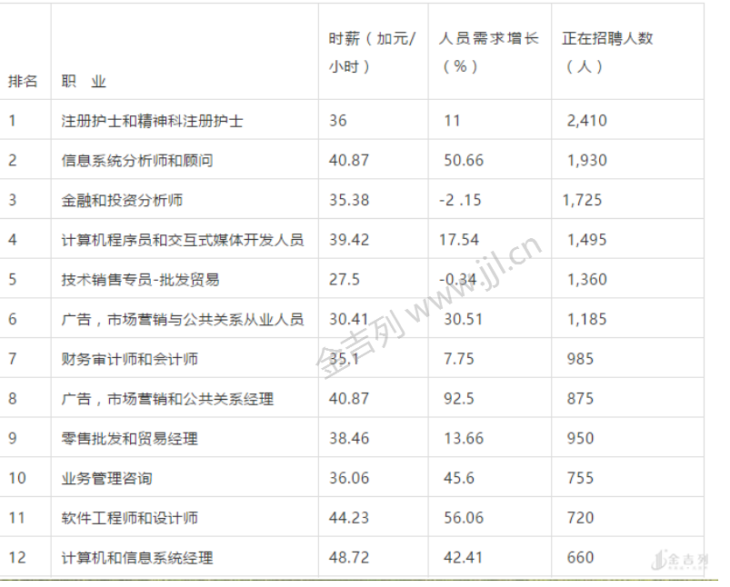 加拿大各大行业薪酬与需求大公开: