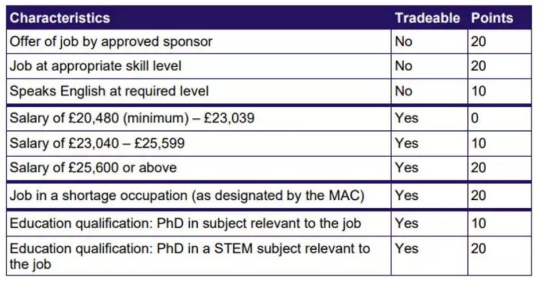 新的打分体系从工作、薪资、技能、语言、学历等方面给出了不同的分数,总分达到70分才能拿到签证,在英国工作。