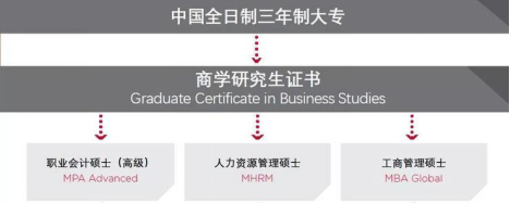 顺利完成商学研究生证书课程的学生将有资格升入莫道克大学的职业会计硕士(MPA高级)、工商管理硕士(MBA全球)或人力资源管理硕士(MHRM),并能获得各自所修读的学位课程的12个学分。