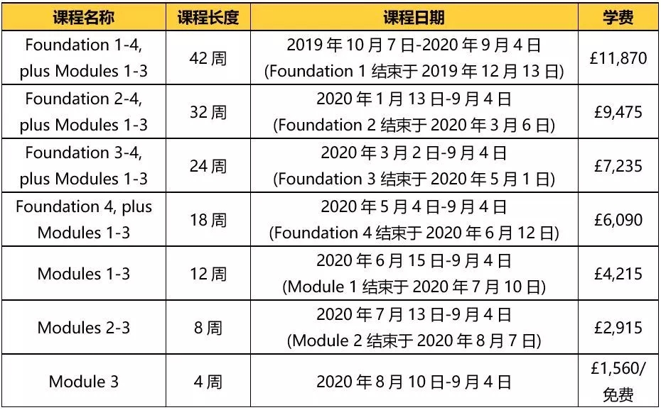 Founation 3-4, plus Moules 1-3 课程的教学起始于2020年3月9日。学生注册及开学介绍活动将在3月2日开始的一周内进行。
