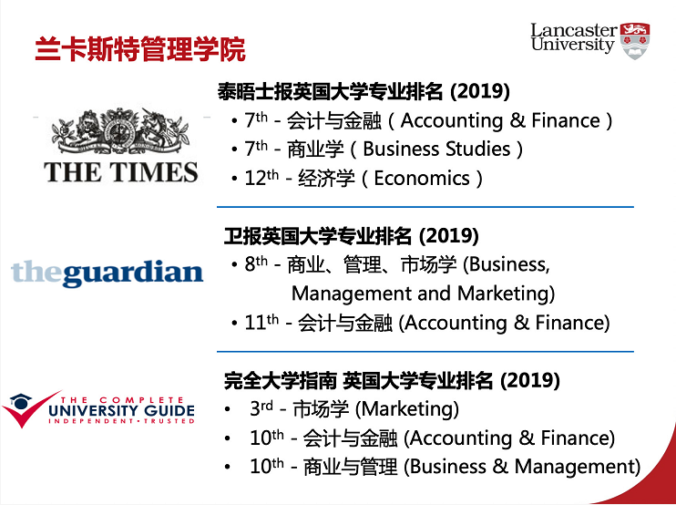 有人会说,兰卡斯特大学的综合排名已经稳居全英前十,在最新的泰晤士报排名中离Top 5也只有一步之遥,在21所“三重认证”商学院中占一席之地也不足为奇吧。