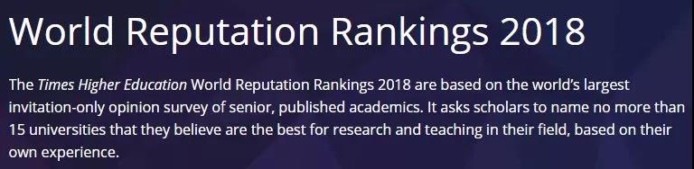 2018年的排名是根据2018年1月至2018年3月进行的一项调查得出的,该调查共收到来自138个国家的10,162份回复。而这些回复均来自世界各地的著名学者,因此能上榜的大学在学术研究和教学上都是被学术大牛们普遍认可的。