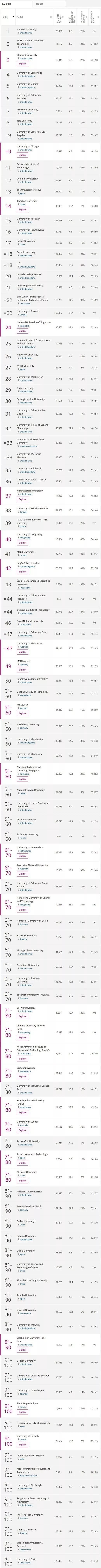 THE世界大学声誉排名是基于世界上最大的仅受邀学者可评价系统的大学排名。它要求参加调研的学者根据自己的经验,对大学的教学和学术表现进行评价。榜单要求受邀的学者全部在自己学科领域具有一定的成就,并且他们仅能对自己熟悉的领域和大学做出评价。