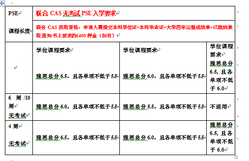 情况二: 接受非UKVI成绩申请【联合CAS无考试】PSE课程