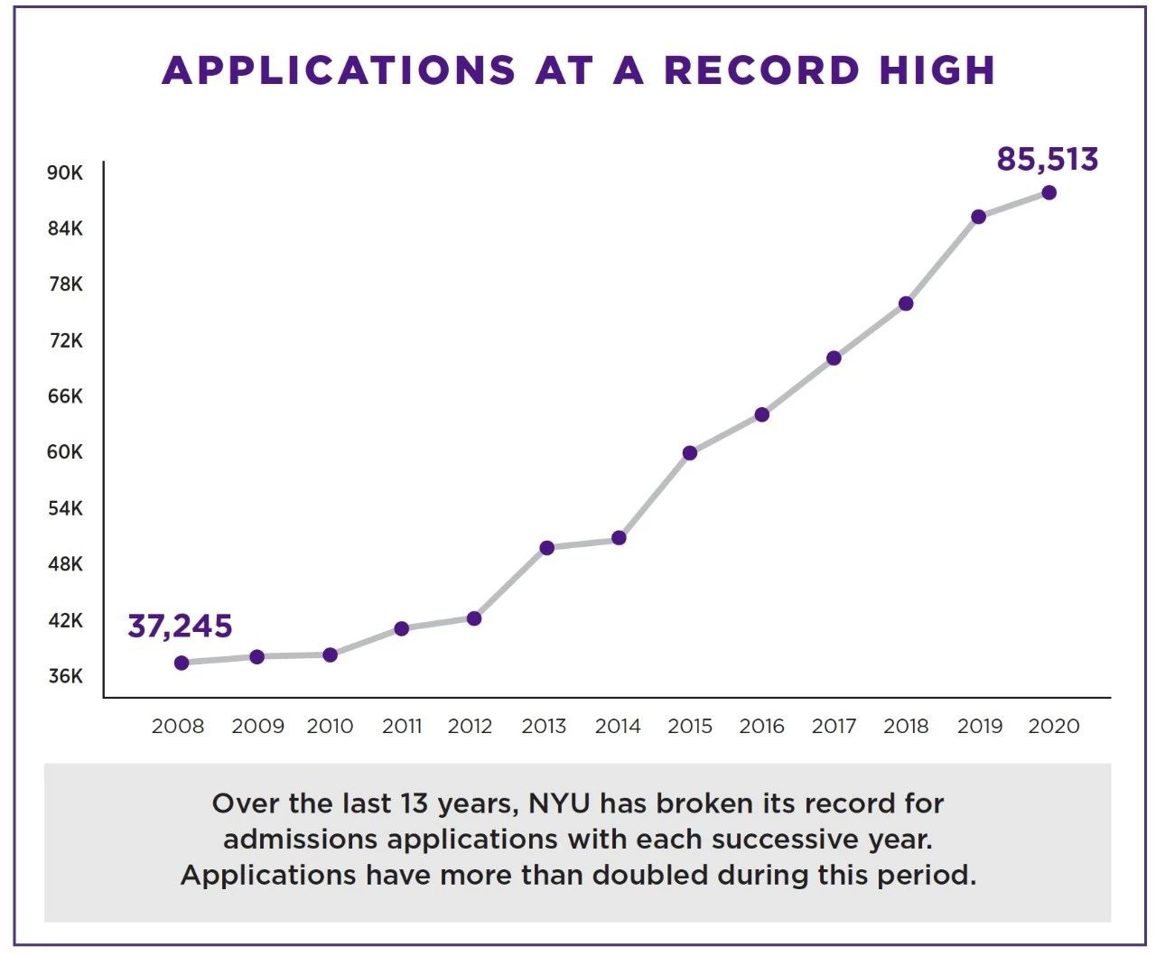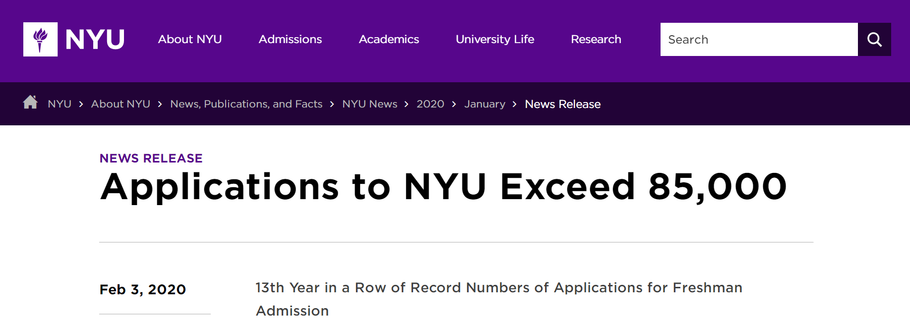 相信纽约大学对于莘莘学子的吸引力,不亚于常春藤、加州大学。前年NYU收到75037封申请,去年收到84481封申请,那刚过去的申请季NYU是否仍保持高吸引力呢?