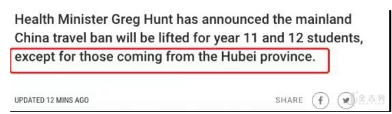 所以他透露澳洲政府会放宽旅游禁令, 允许湖北省外的11年级和12年级中学生 从中国返澳。