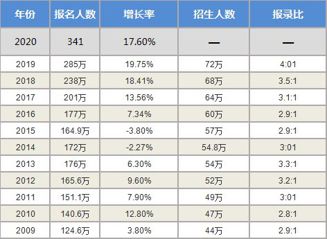 近年来考研人数越来越多,今年考研人数相对于2017年翻了一番。