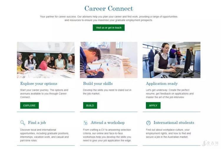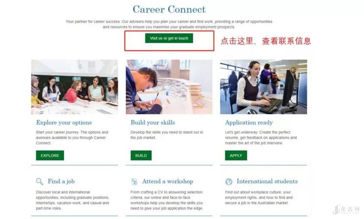 如果你有任何关于求职方面的疑问,需要单独咨询,请点击页面中的‘vist us or get in touch’ ﹙如图3所示),查看career connect在各个校区的地址及联系方式。