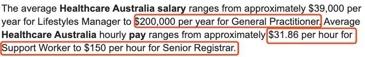 举个例子,GP每年的平均工资为20万澳元,有的1小时收入尽达到了142澳元! 这在澳洲是非常可观的收入了。 卫生部门的工资增长最可观,平均增长3.2%, 而其他行业平均涨幅才2.2%。