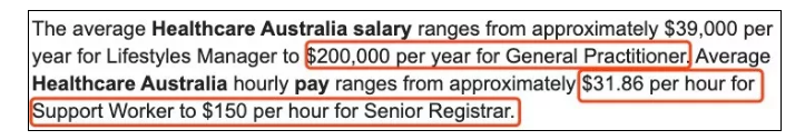 举个例子,GP每年的平均工资为20万澳元,有的1小时收入尽达到了142澳元! 这在澳洲是非常可观的收入了。 卫生部门的工资增长最可观,平均增长3.2%, 而其他行业平均涨幅才2.2%。