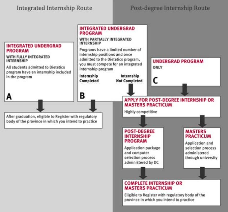 像其他健康类从业人员一样,营养师必须向本省的监管机构登记,来从事相关工作。监管机构将评估申请者的学术和实践经历,资格认证通过后,就成为了注册营养师Registere Dietitian(RD)。