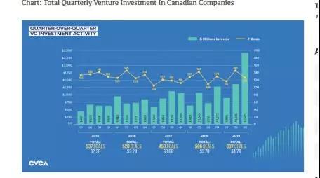 根据加拿大风险投资与私募股权协会(CVCA)发布的报告,仅2019年第三季度,风险投资总额高达18亿美元,几乎比第二季度高出80%。