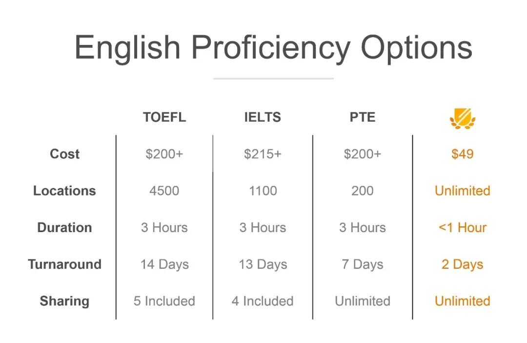 上图什么意思呢? ,DET是我们在家就可以完成,一台电脑,稳定的网络,一个小时答题就可以啦,多久可以出成绩呢? 48小时,成绩单免费发送到大学不限数量,考试费多少? 49美金,天地良心啊!