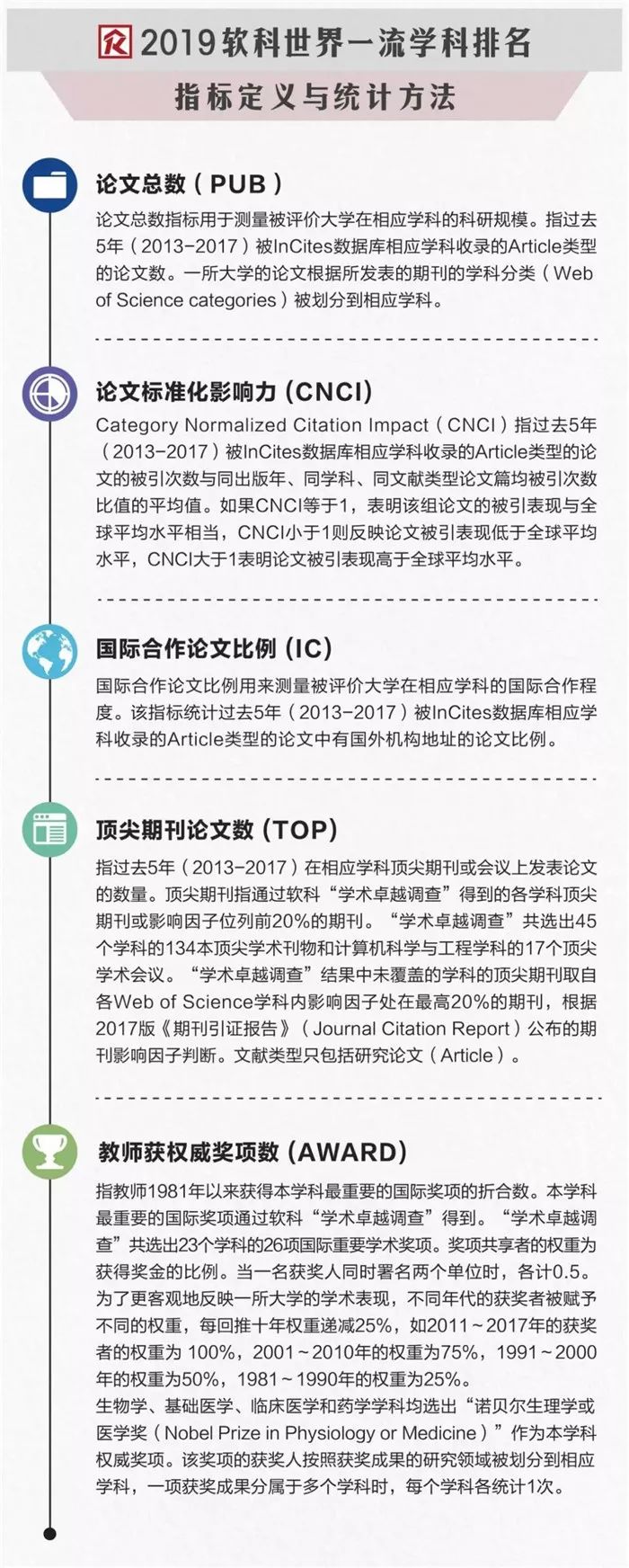 不过,排名标准和其他大学都不一样,衡量大学在学术方面的表现,主要根据论文总数,影响力,国际合作论文比例,顶尖期刊论文数,以及教师获权威奖项数。