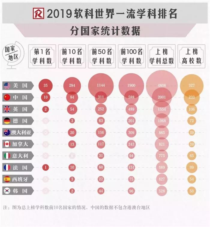 中国内地共有233所高校上榜,有10个学科位列世界第一,仅次于美国,位列全球第二。