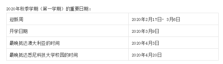 澳大利亚政府最新公布的临时旅行限制将延长至 2 月 29 日。学校 了解到一些同学可能正在考虑延期入学或取消已选课程。 悉尼科技大学鼓励大家可以继续注册入读你的课程,我们有信心为你提供必要的安排,使你可以正常进行 你的 2020 年秋季学期(第一学期)的学习。