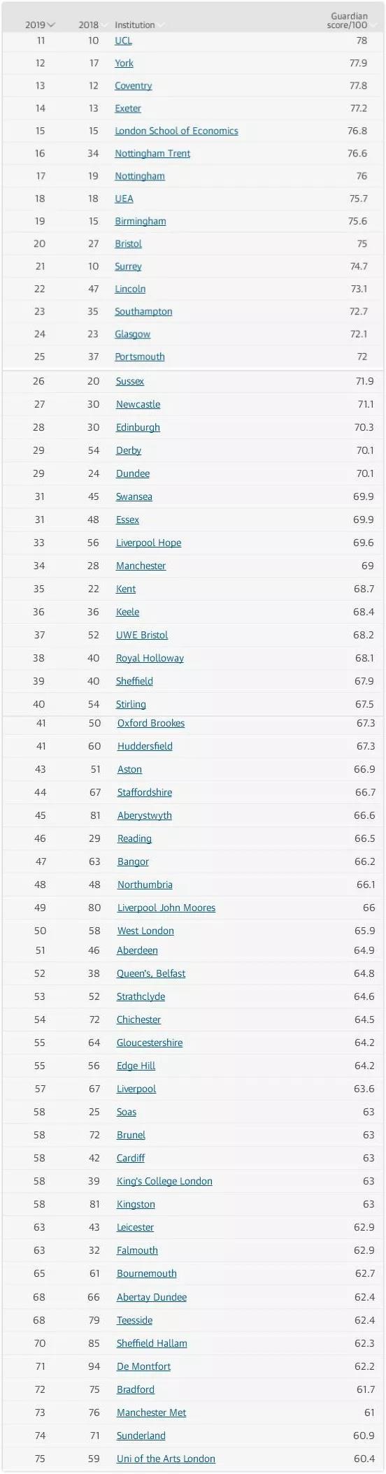 近日,英国《卫报》发布了最新一期的2019年英国大学排名。
