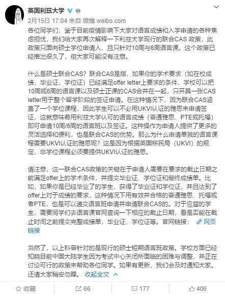 利兹大学称:联合CAS政策的关键在于申请人需要在要求的截止日期之前满足offer上的学术条件,并提交毕业证、学位证和最终成绩单。如果你是已经毕业了的学生,获得了毕业证和学位证,并且达到了offer上对于成绩的要求,这种情况下用有效并合格的普通雅思、托福或者PTE,也是可以递交语言班申请并申请联合CAS的。