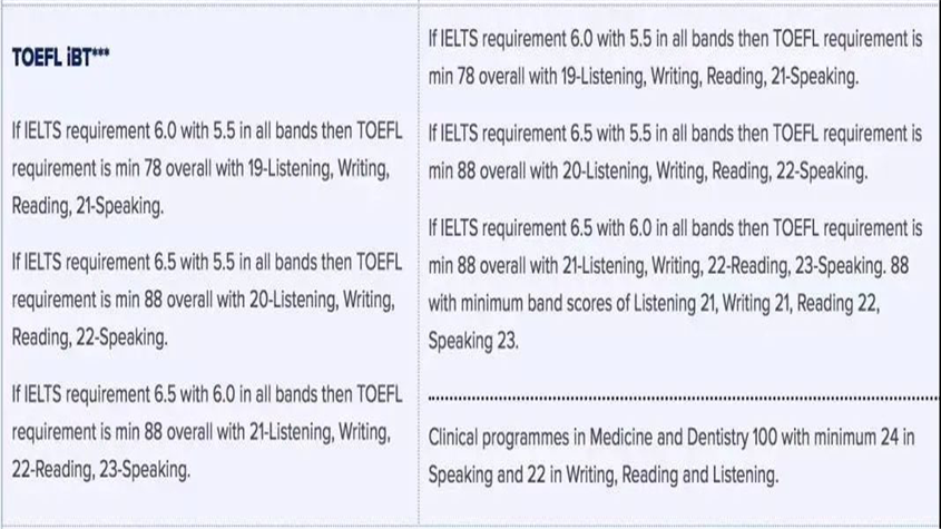 另外,纠结于雅思的同学请注意,除雅思外格拉斯哥大学也接受包括托福、剑桥英语和PTE等在内的多种其他语言测试。