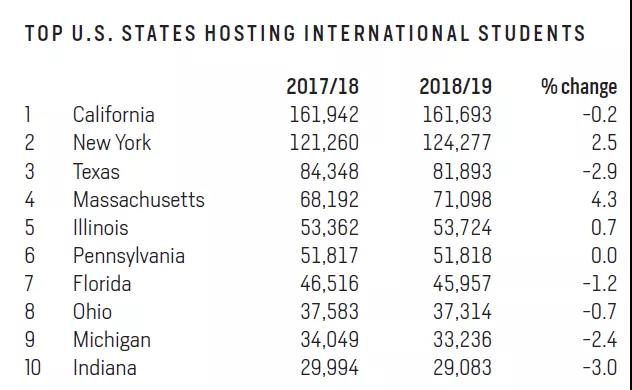 2019年,中国近37万留学生赴美,其中 超过16万人去往加州,超过12万人去往纽约 。虽然从数量上看加州吸引的留学生更多,但是从发展趋势上看,今年加州的人数增长低于去年,反倒是纽约继续保持着吸引力。