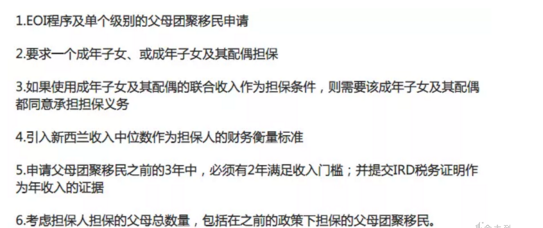 父母团聚移民新政规定:申请父母团聚移民之前,担保人必须获得新西兰公民或居民身份 超过3年 ,也就是说 新移民暂时无法为父母申pr !