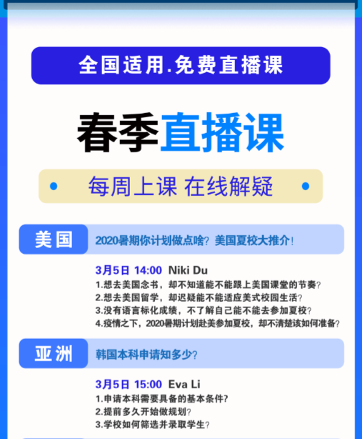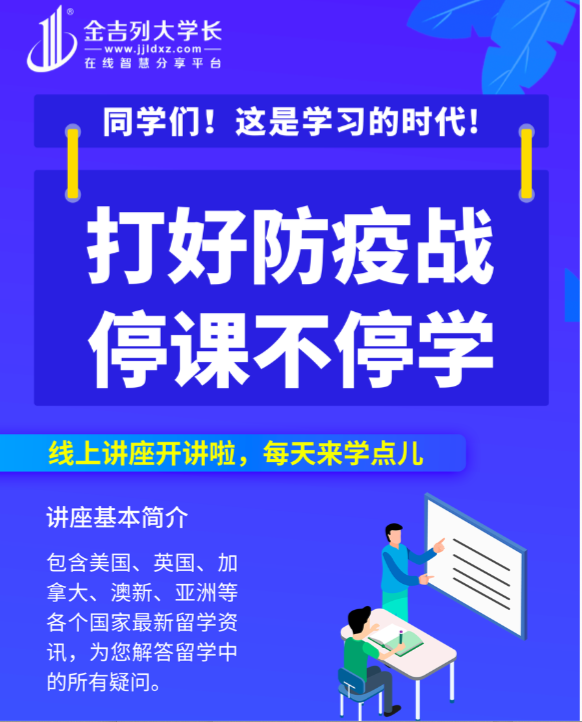 金吉列推出一些列免费线上课程啦,大家走不路过不要错过哟! 在疫情下,我们要怎么有效准备美国留学呢?