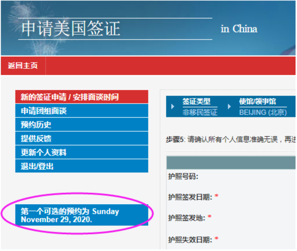 北京领区可预约最早时间:2020年11月29日