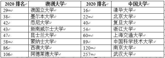 每年高考倒计时一百天,高三学生无比焦虑。加之今年疫情影响,开学延后,好多家长也都坐立不安了。近期,高三学生及家长咨询量猛增,今天,统一给大家整理一下高中生进入世界百强名校的途径。首先,我们来看一下澳洲八大的世界排名。为了方便大家比较,我加上了国内大学的排名,参考标准2020年QS世界大学排名。