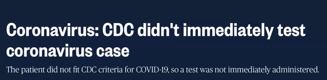 原来这位病人在2月19号转到加州大学戴维斯分校医疗中心时,该中心就认为是疑似病例并上报给CDC要求进行检测,却遭到了联邦机构的拒绝。