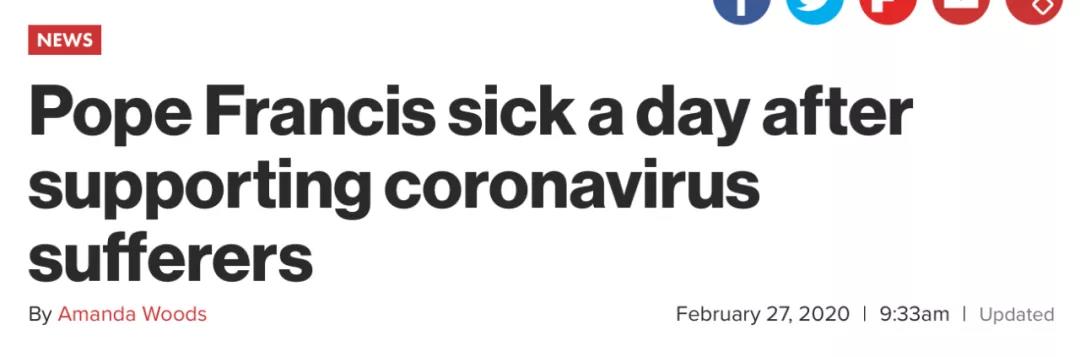 天主教现任教皇方济各今天也出现了“身体不适”。