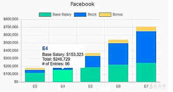 值得注意的是,门槛的上升导致 H-1B 的平均薪资比以往都要高。 还是来看一下脸书的数据,他们在 2019年的平均薪资为 164k,但也不否认是一些顶尖程序员的高薪拉高了整体水平。 尤其是高级软件工程师的基本薪资、分红、和奖金,加起来已经能拿到 700k。