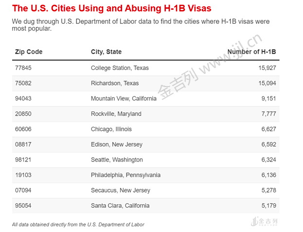 你肯定会联想到硅谷,因为那里是雇佣人才最集中的地方,但事实上德克萨斯州才是 H-1B的主要发放地。 College Station 这样一个看似随意的地方,却暗藏很多跨国公司。据数据显示,College Station在 2019年批准了 15,927份 H-1B签证,其中 Cognizant公司 (一家外包公司) 占了 15,670份。