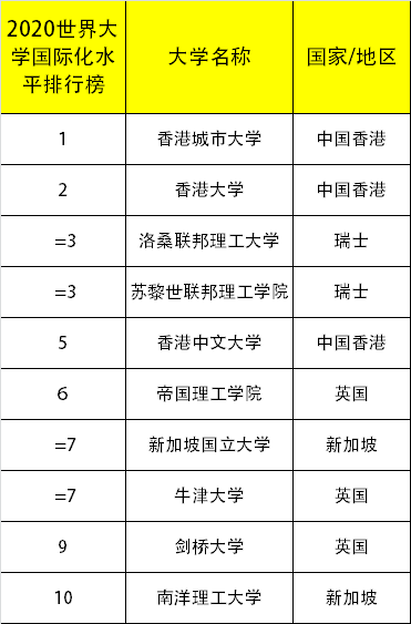 很神奇的是,排名前10的大学被瑞士、中国香港、新加坡、英国包揽!