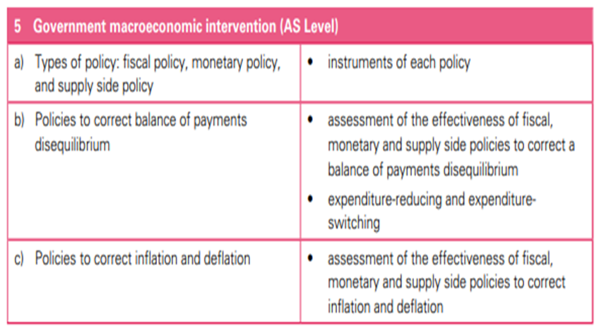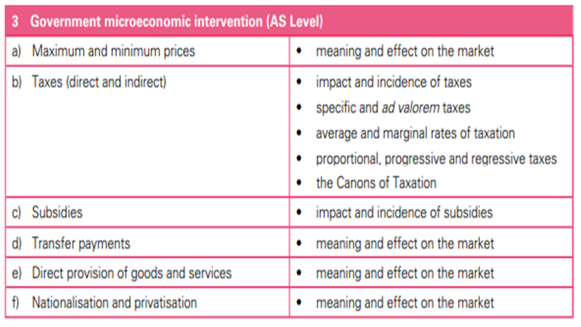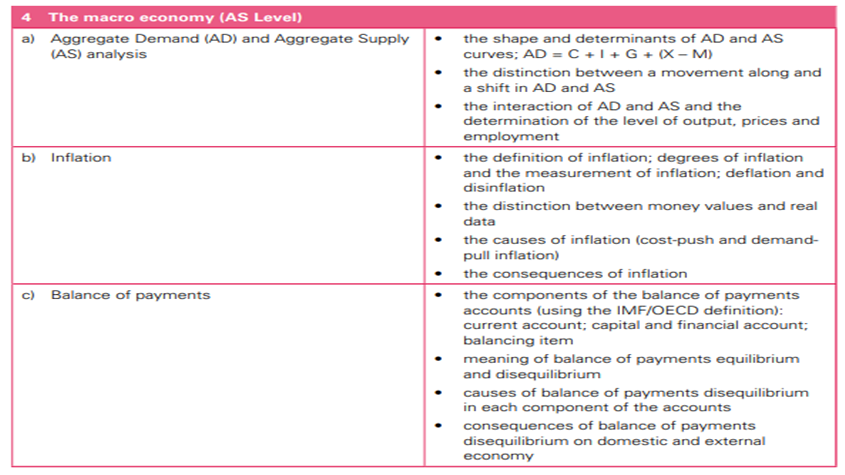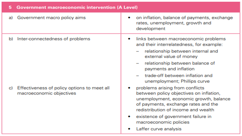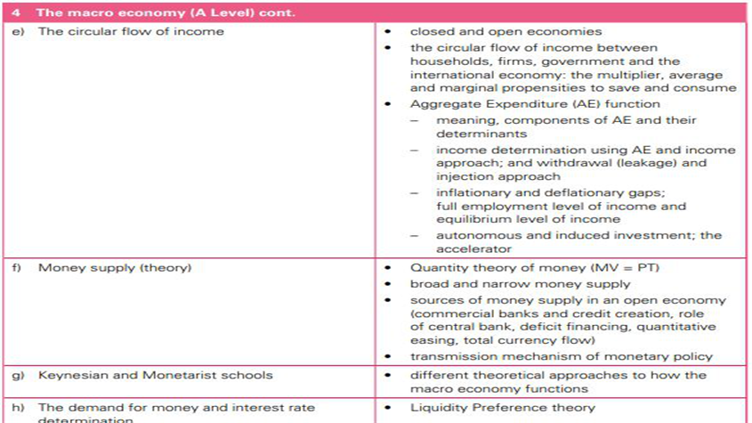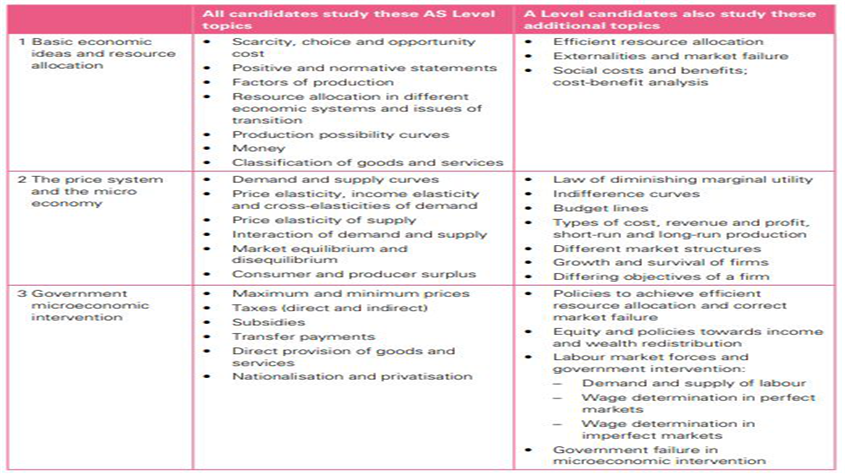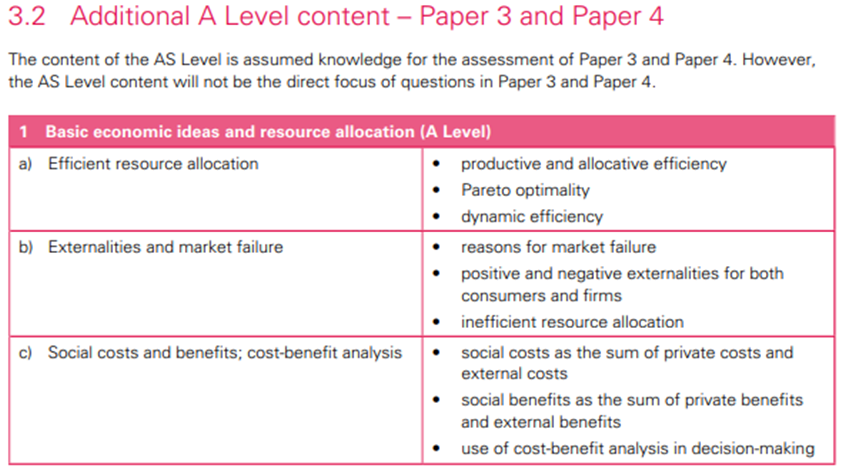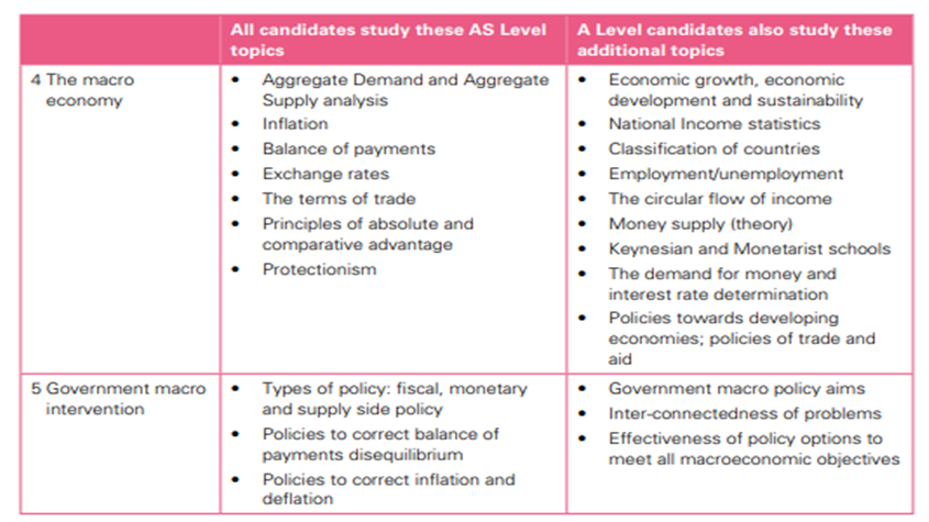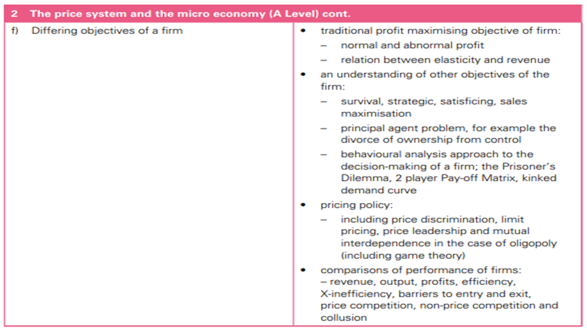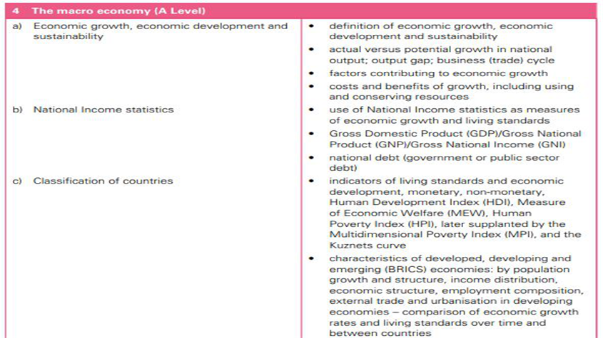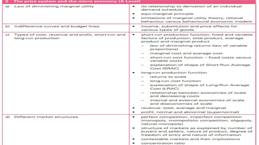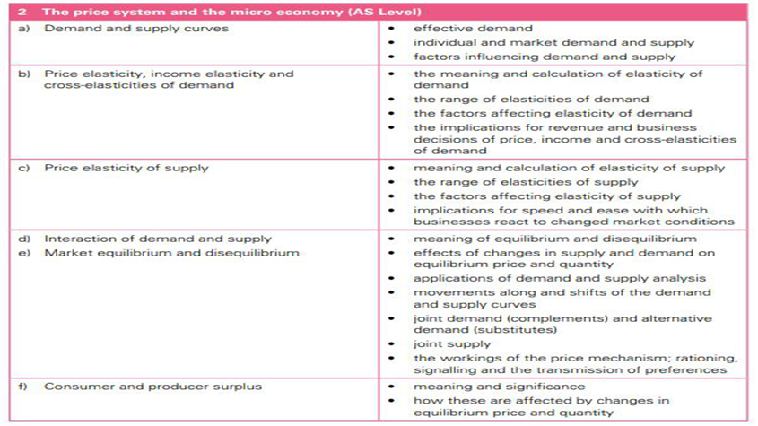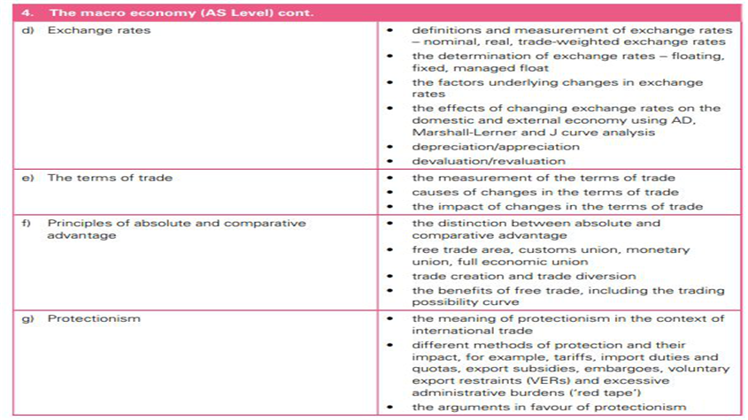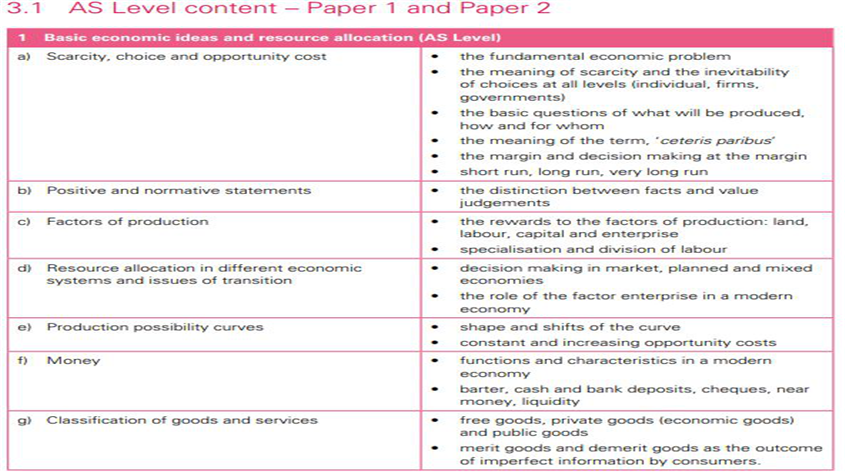 A-level经济考纲列出了考试会考查的所有内容,考官也都会围绕这些考点来出题。