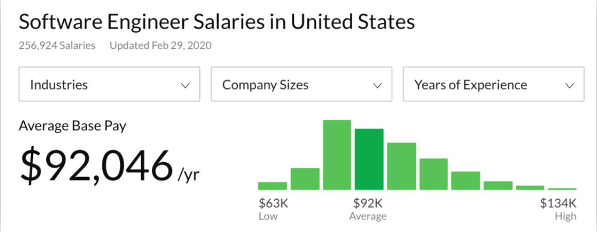 以美国地区Software Engineer的薪资为例,高达92,046美金!