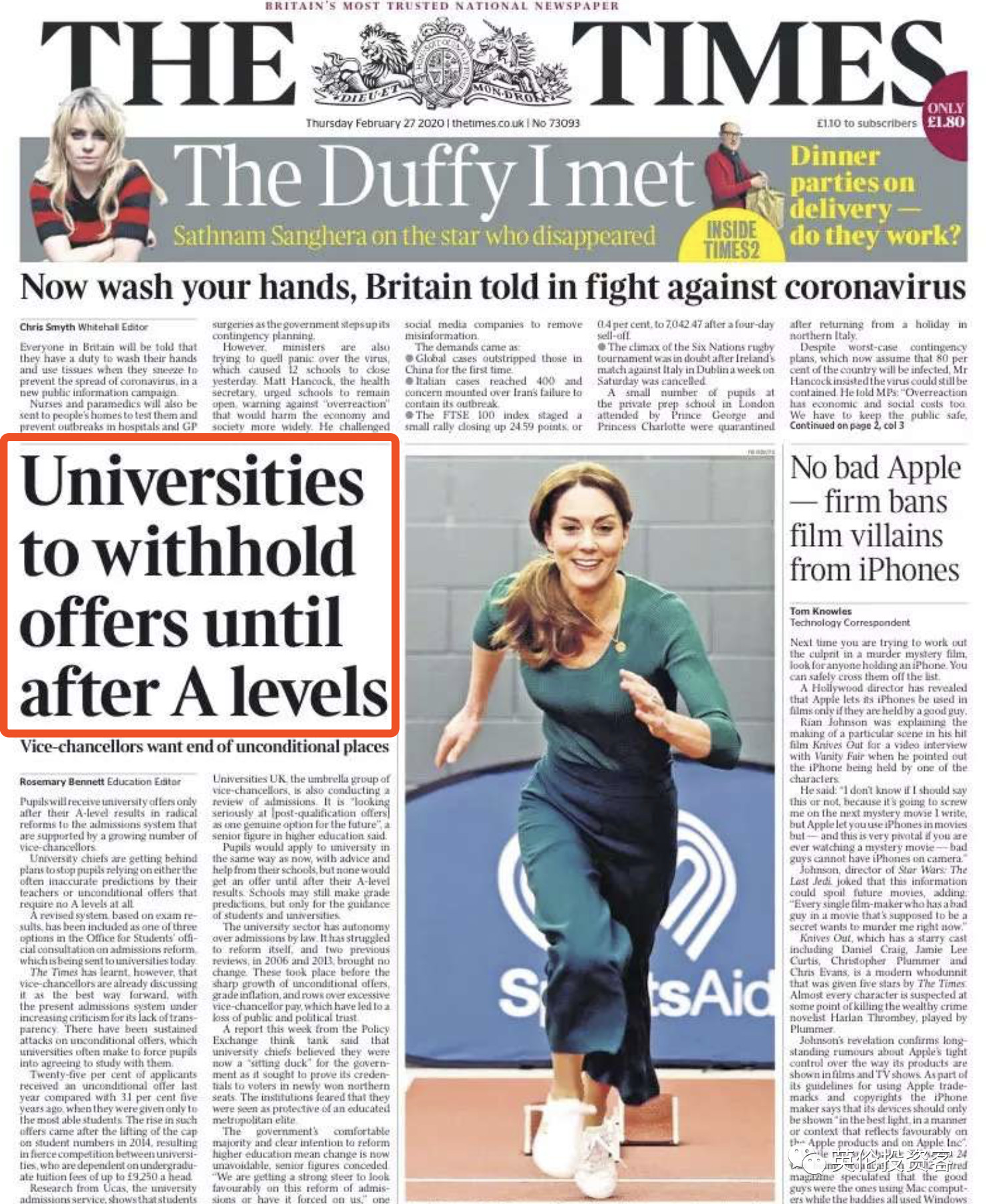 为响应教育部的改革,英国各大学正紧锣密鼓审查招生程序 在接受英国媒体采访时,一位英国大学资深教育人士表示,正式认真考虑将“获得成绩后再发录取通知”作为未来的招生方案。