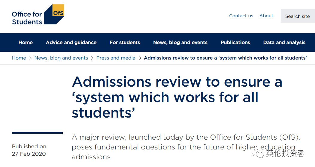 英国教育部将在2020年5月21日公布对英国招生改革的调查结果 。