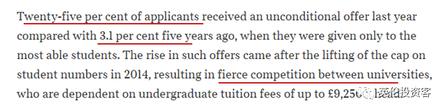 在2014年取消招生人数上限之后,各英国大学开始为争取生源展开激烈竞争,毕竟学校还有赖于人均高达9250英镑的本科生学费(国际生一般再翻倍)。