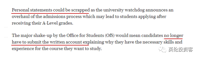 这主要是因为,教育慈善机构萨顿信托基金会(Sutton Trust)的研究表明,个人陈述不利于那些弱势背景的申请人,他们无法提供足够多的相关工作经验,而大学用这些经验来区分申请者是否优秀的做法较为不公平。