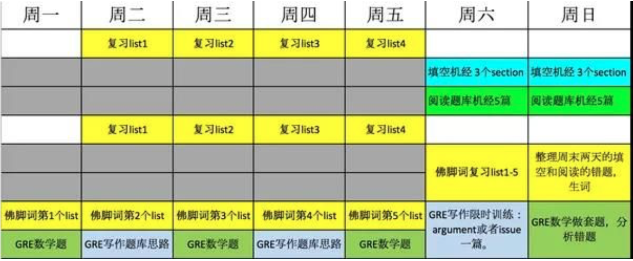 也可以以一周为单位,细化分配每周最适合自己的复习任务: