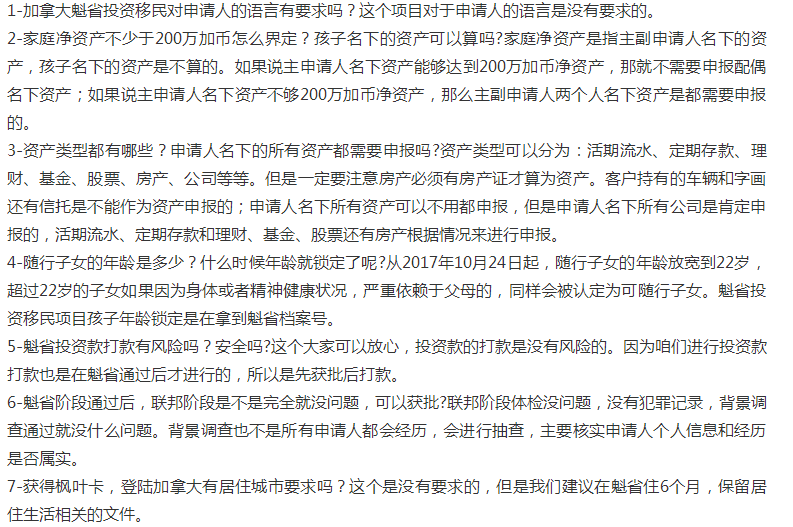 现将加拿大魁北克投资移民的申请要点***释答如下: