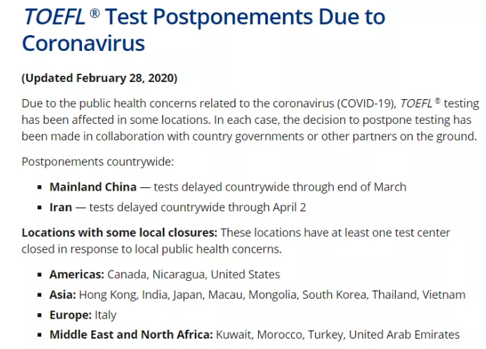 并且ETS还已经通知了使用托福成绩的大学,告知因考试被取消,而会导致部分学生延迟递交成绩,这并不是学生的过错