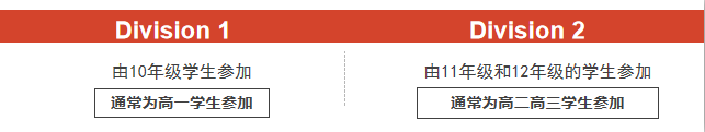 高二,高三学生(IB11-12年级,A-Level AS和A2年级)选择Division 2考题(高二高三的学生不可以报考Division1)。
