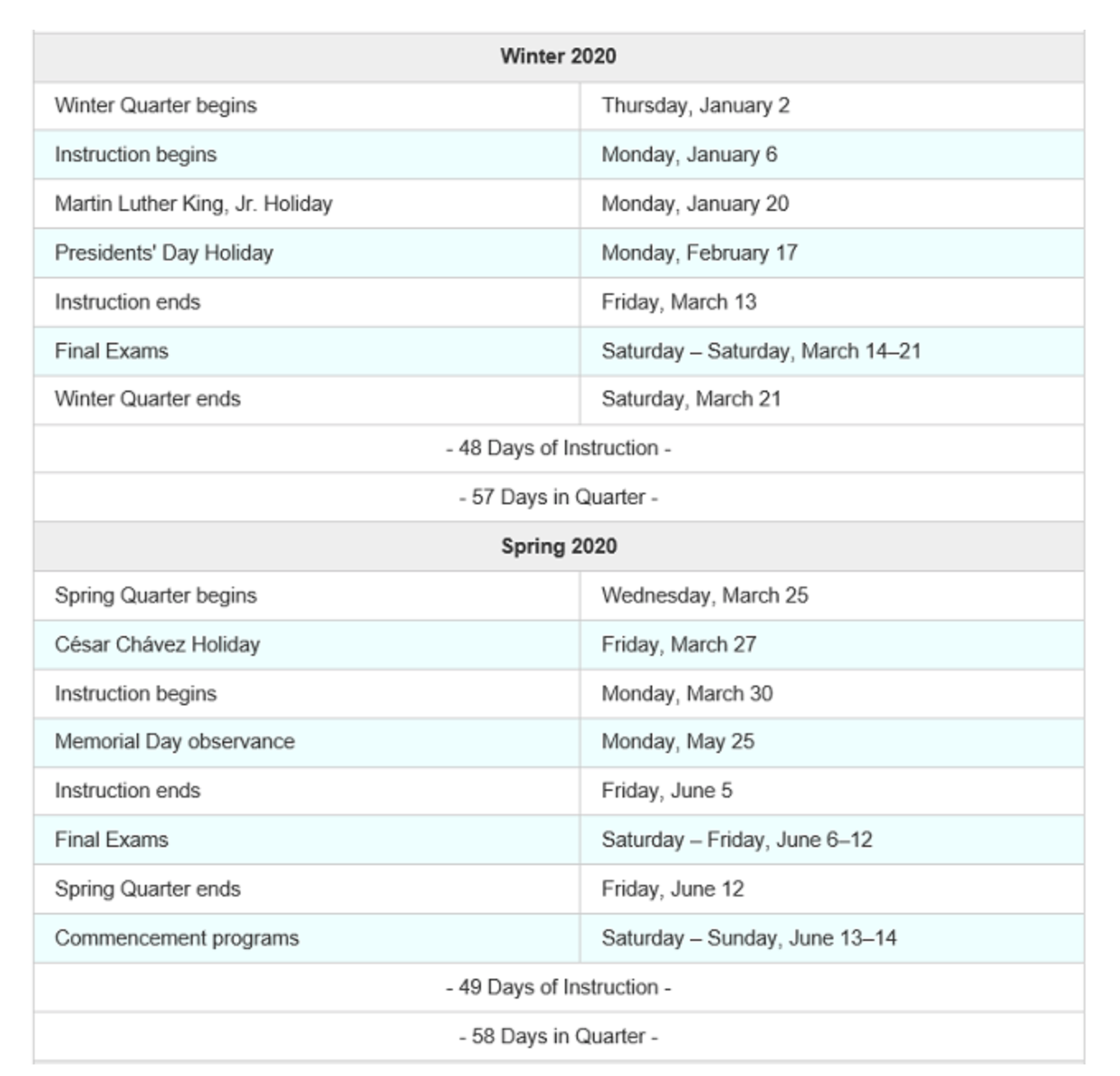 美国大学采行的校历(Acaemic Calenar System),因学校而异,主要可分三种,学期制(semester)、学季制(quarter)和三学期制(trimester)。