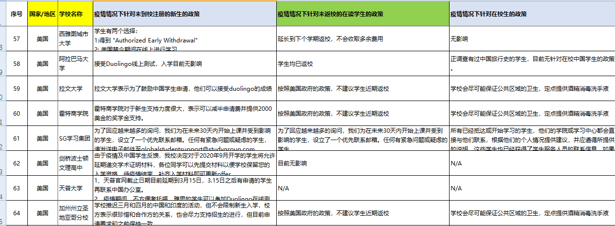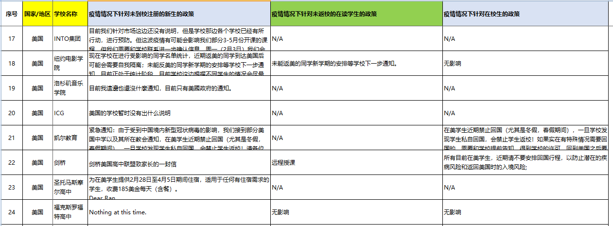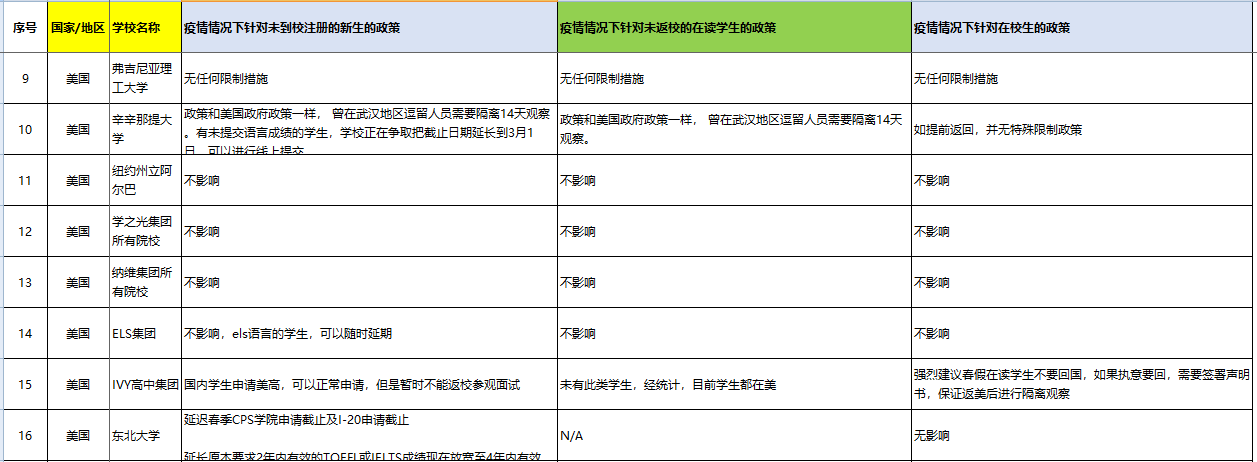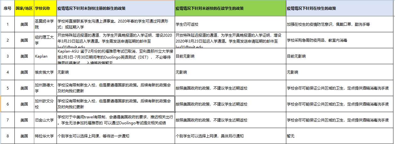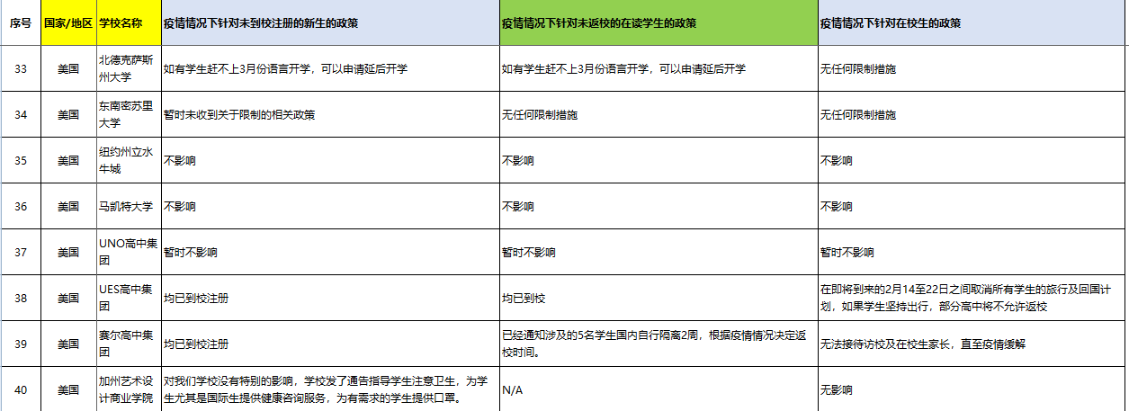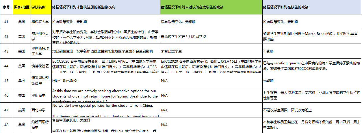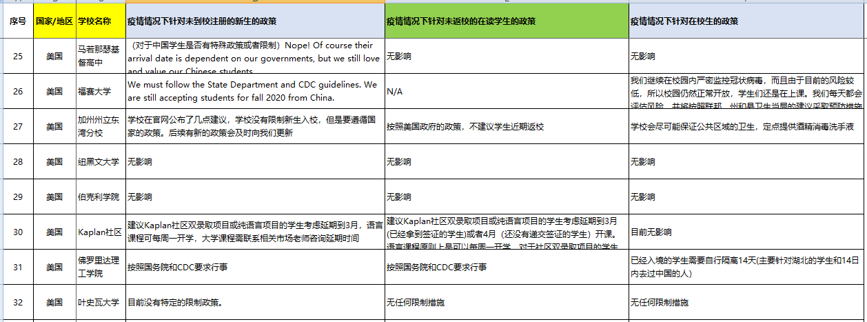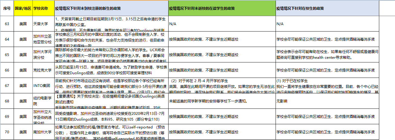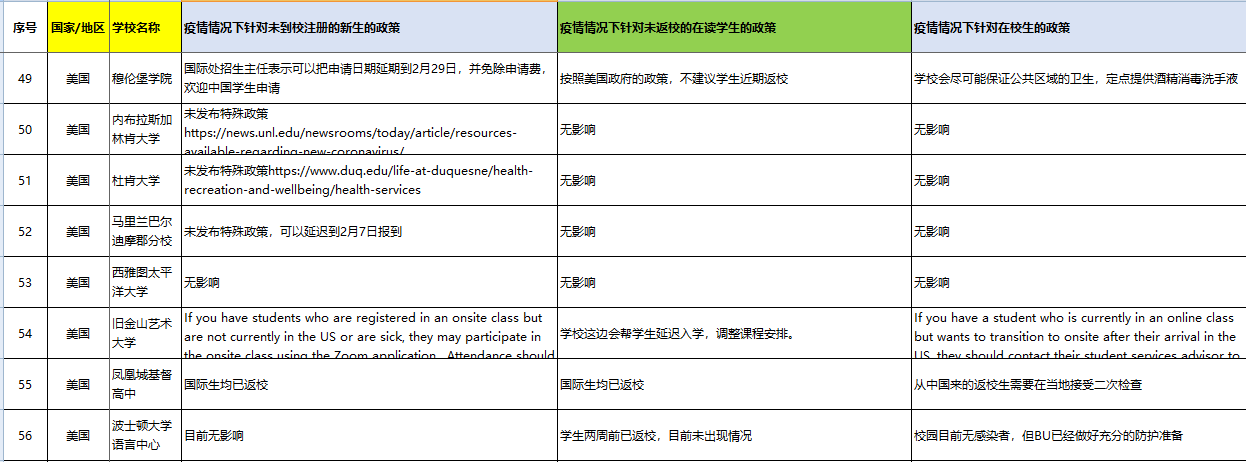> 美国院校疫情情况下针对中国学生的政策
